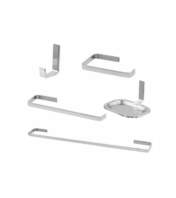 Kit Acessórios para Banheiro Stander QuadradoContendo:• 1 Gancho Cabide• 1 Saboneteira• 1 Papeleira• 1 Porta Toalha• 1 Porta Toalha RostoComposição: Liga de cobre (bronze, latão e AL).